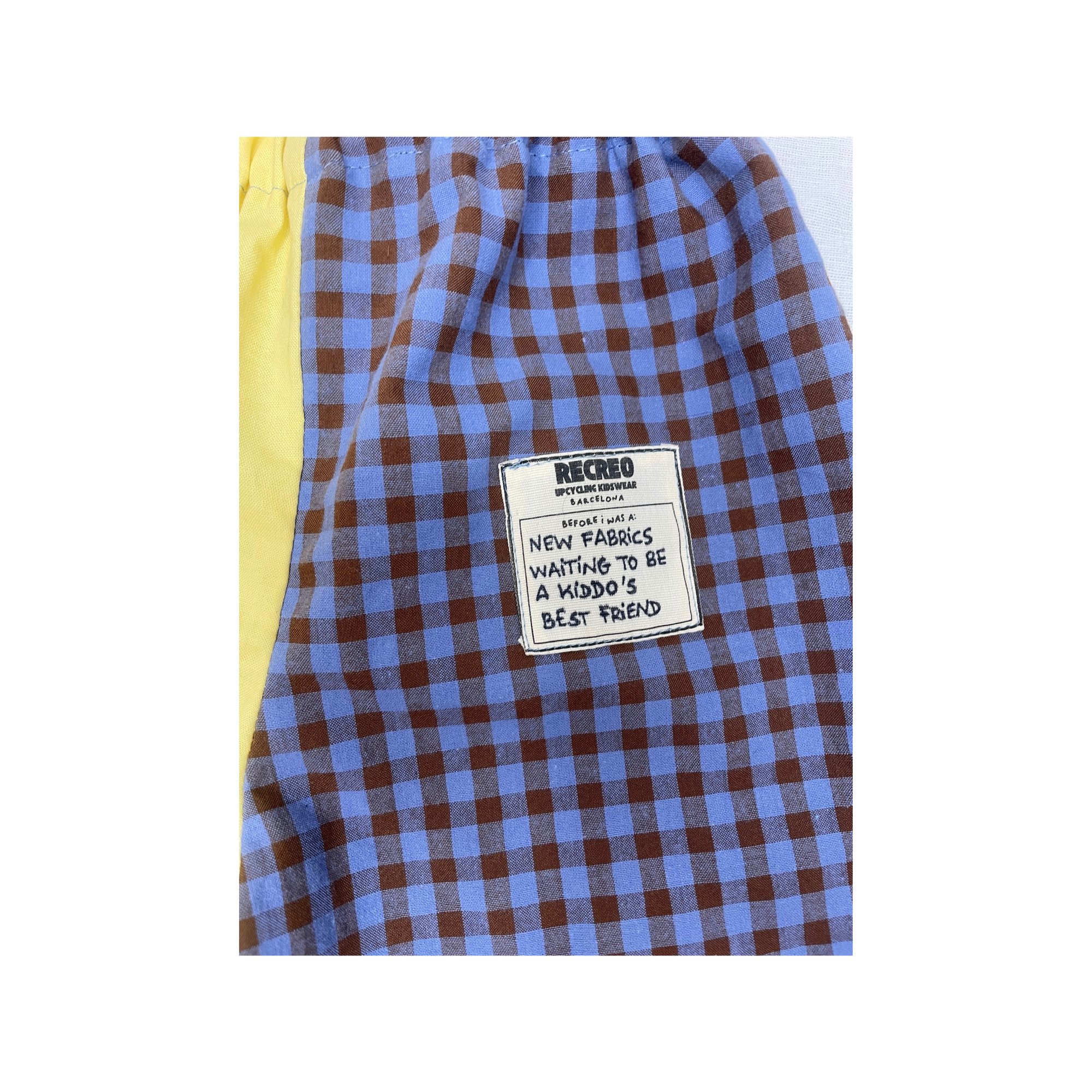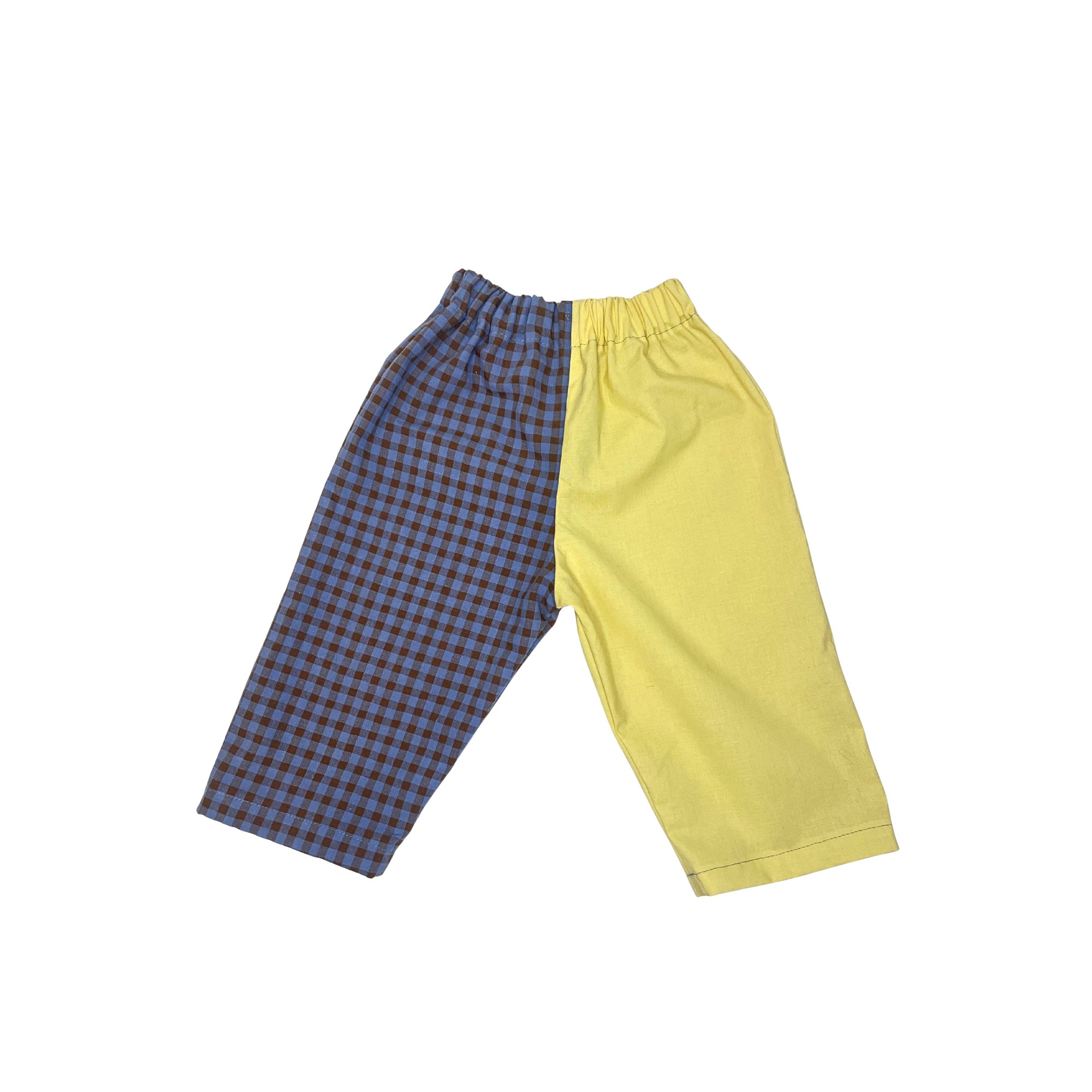 Este pantalón infantil es un diseño confeccionado a mano a partir de telas nuevas y recuperadas.