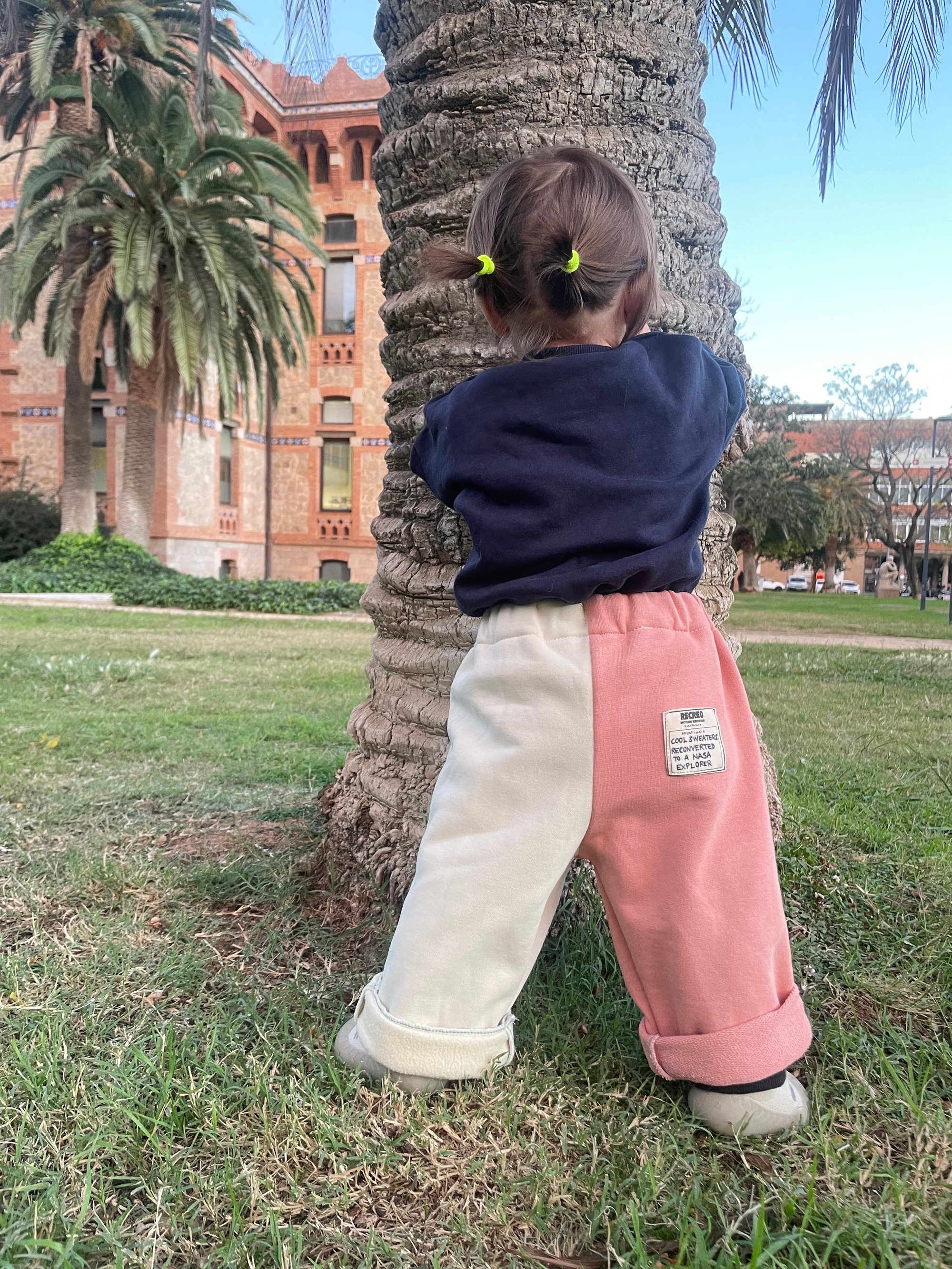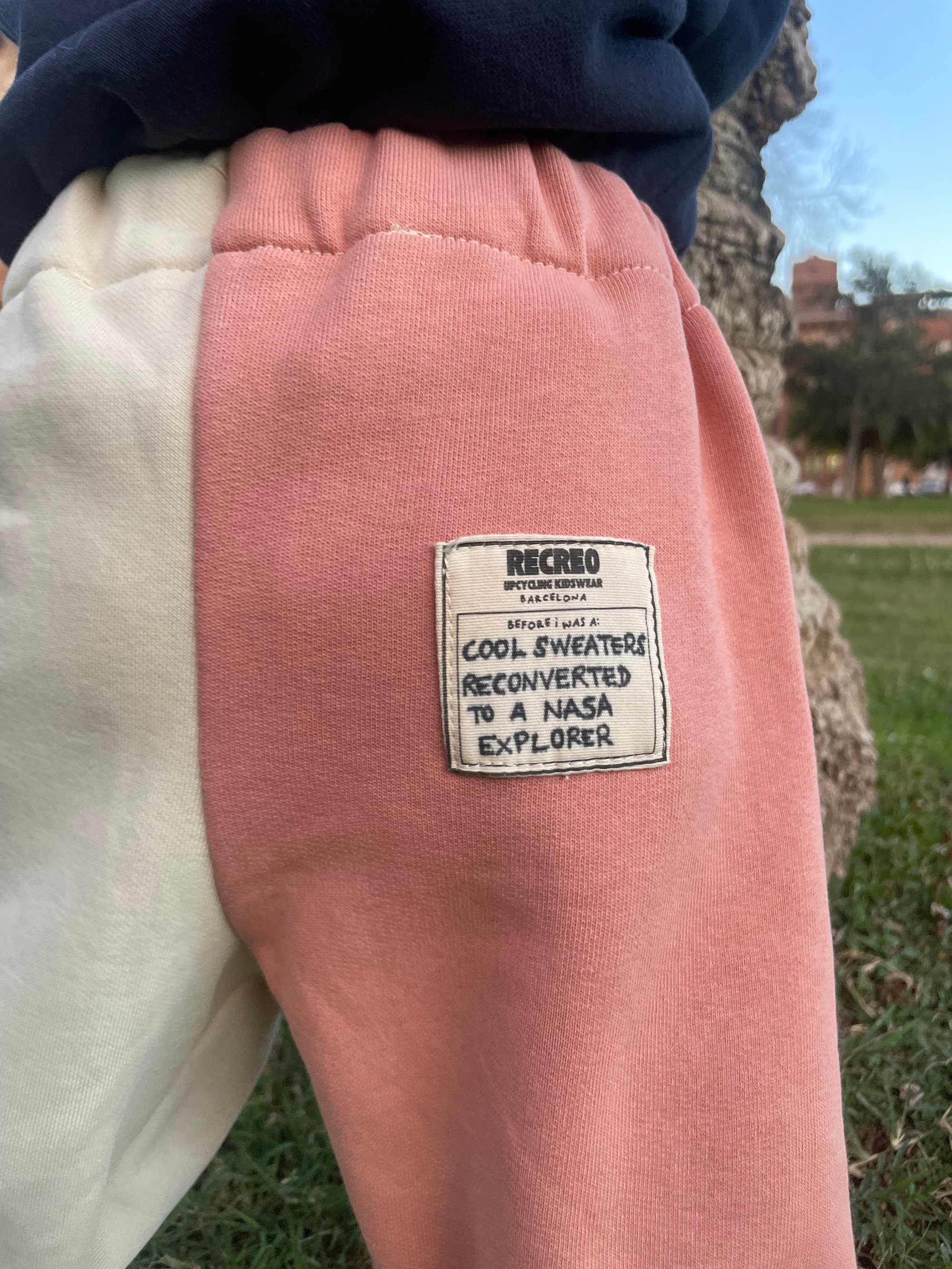 Este pantalón infantil es un diseño 100% upcycled, confeccionado a mano a partir de prendas recuperadas, en este caso: dos sudaderas. Con esta metodología no solo reducimos el impacto ambiental, sino que creamos una pieza que es, literalmente, irrepetible. Única y pensada para el libre movimiento.